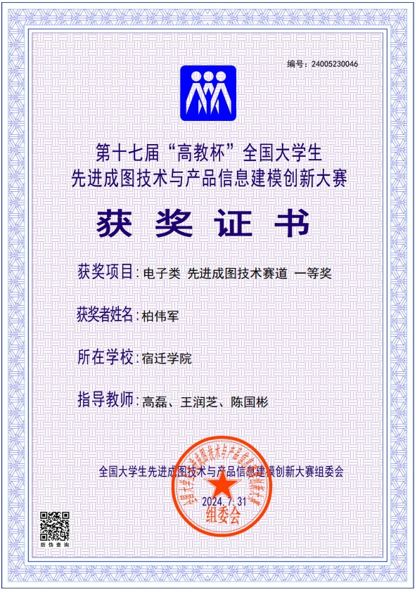 第十七届“高教杯“全国大学生先进成图技术与产品信息建模创新大赛一等奖