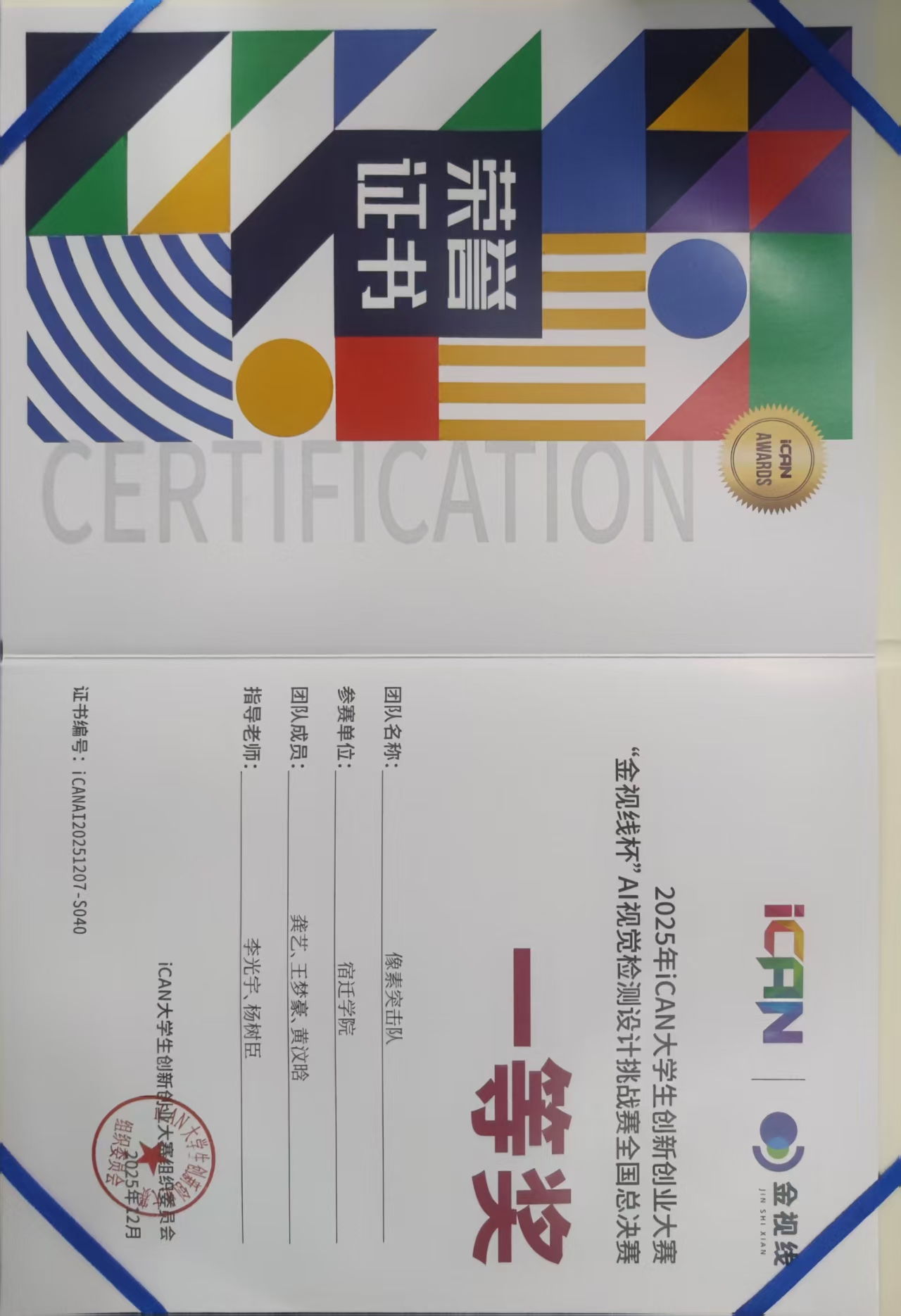 2025年iCAN大学生创新创业大赛 一等奖